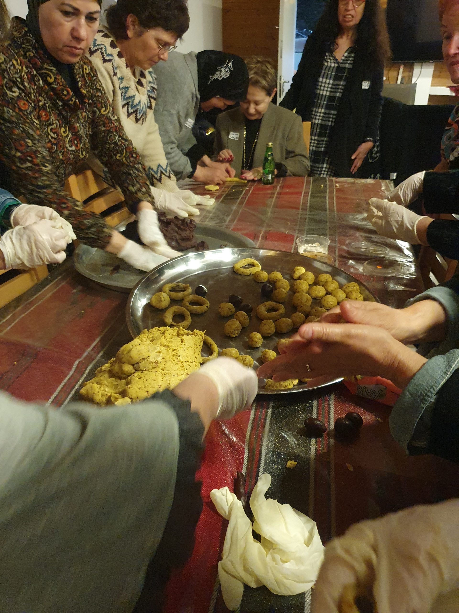 מפגש להכנה משותפת של כעכ בטירה בבית רווידה  ובהדרכתה לפני הרמאדאן .